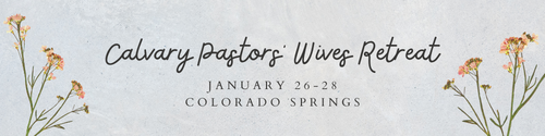 Join Calvary Pastors' Wives from Colorado and Wyoming for a special retreat January 26-28 at Glen Eyrie Conference Center in Colorado Springs. This weekend will provide a unique space for Senior Pastors' wives to connect with one another outside the busyness of ministry life. Come rest and be encouraged as we pray together, worship together, and share stories of God's faithfulness.