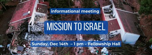 We are exploring a mission opportunity to come alongside Believers in Israel who are serving their war-ravaged nation. we are hosting an informational meeting on December 14th at 1pm downstairs in the Fellowship Hall to answer questions, share details we know to this point, and get a sense of team interest, size, and dynamics.