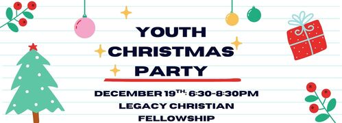 Legacy Youth is hosting a Christmas Party + Worship Night on Friday, December 19th from 6:30-8:30pm. We’ll have student-led worship, Christmas games,
