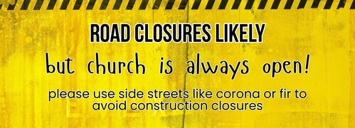 Eppinger and Hoffman Way are under construction for new water mains. You may need to avoid the 4-way stop and preemptively turn on Corona or Fir to navigate around the closure and find your way to church. We'll have signs to help direct traffic!