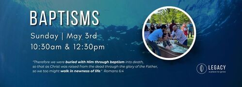 On Sunday, May 3rd there will be two baptisms: one after 1st service at 10:30am & another after 2nd service at 12:30pm. Sign up HERE.