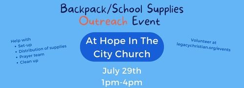 We are teaming up with Hope in the City Church located at 6405 Monaco St. for their “In-n-Outreach Day”. On July 29th we will be helping distribute backpacks and school supplies to their community in Commerce City from 1pm-4pm. Not only does the event include free backpacks and school supplies, but there will be music, giveaways, and free In-n-Out burgers! If you are interested in volunteering please sign up below. (Please note: There will be a team meeting at Hope in the City Church for all volunteers on Saturday July 22nd at 3pm)