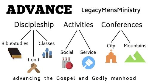 The purpose of ADVANCE Men’s Ministry is to advance the Gospel and Godly Manhood in all the environments and seasons of life God places us. We accomplish this by the teaching of the Word of God and connecting with each other through fun and fellowship.
